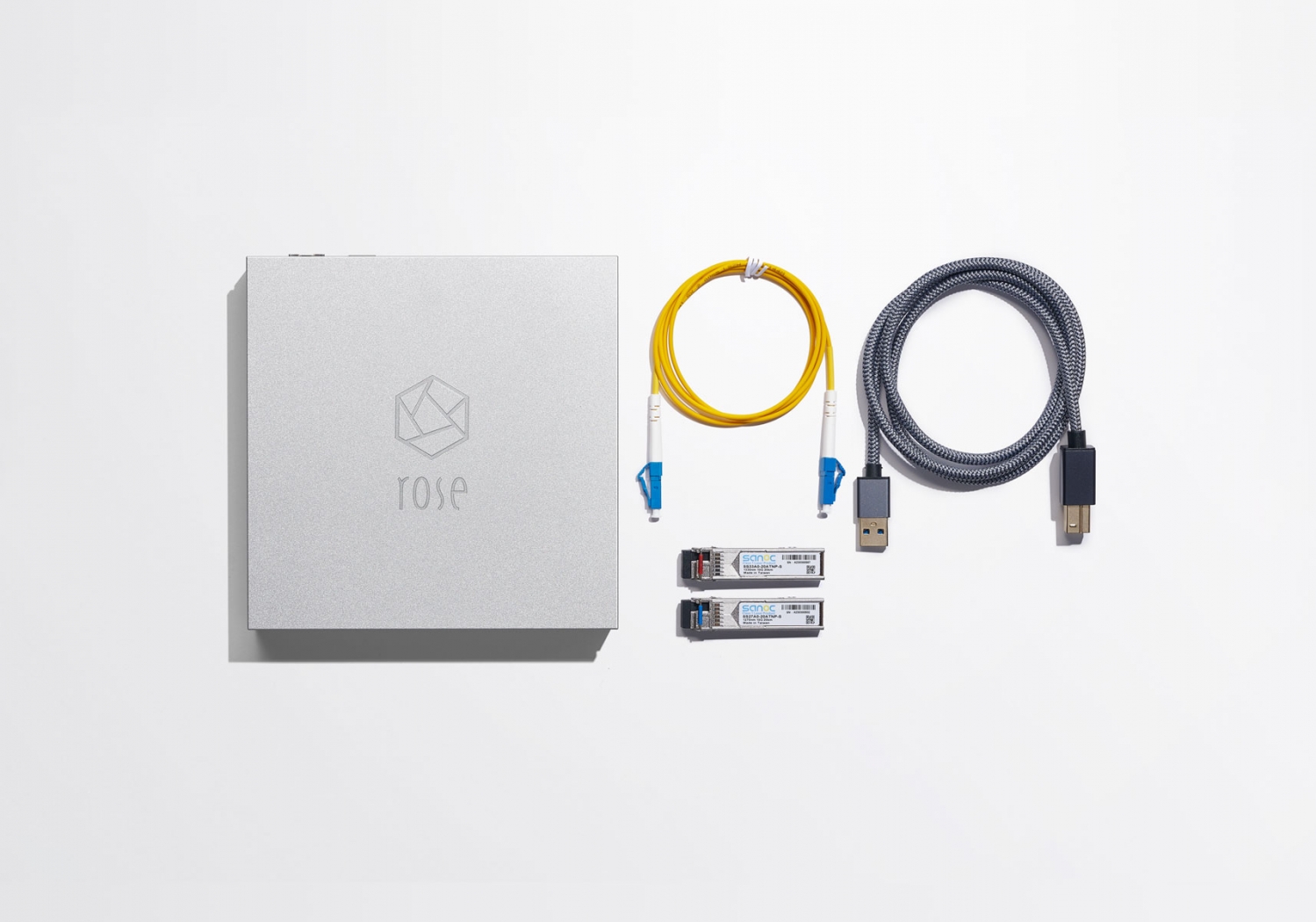 INCLUI - 2 Módulos SFP - 2 Cabos SFP LC de 1m - 1 Cabo USB 3.0 Type B de 1m - Adaptador - Cabo de Corrente - Manual