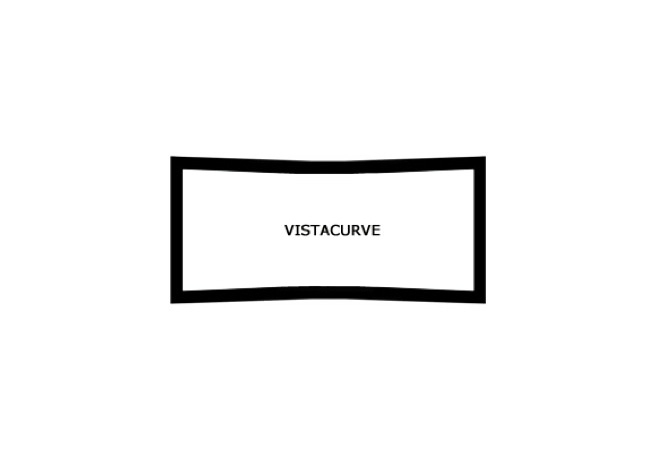 Tela de projeção curva acusticamente transparente para imagens projetadas através de lentes anamórficas.